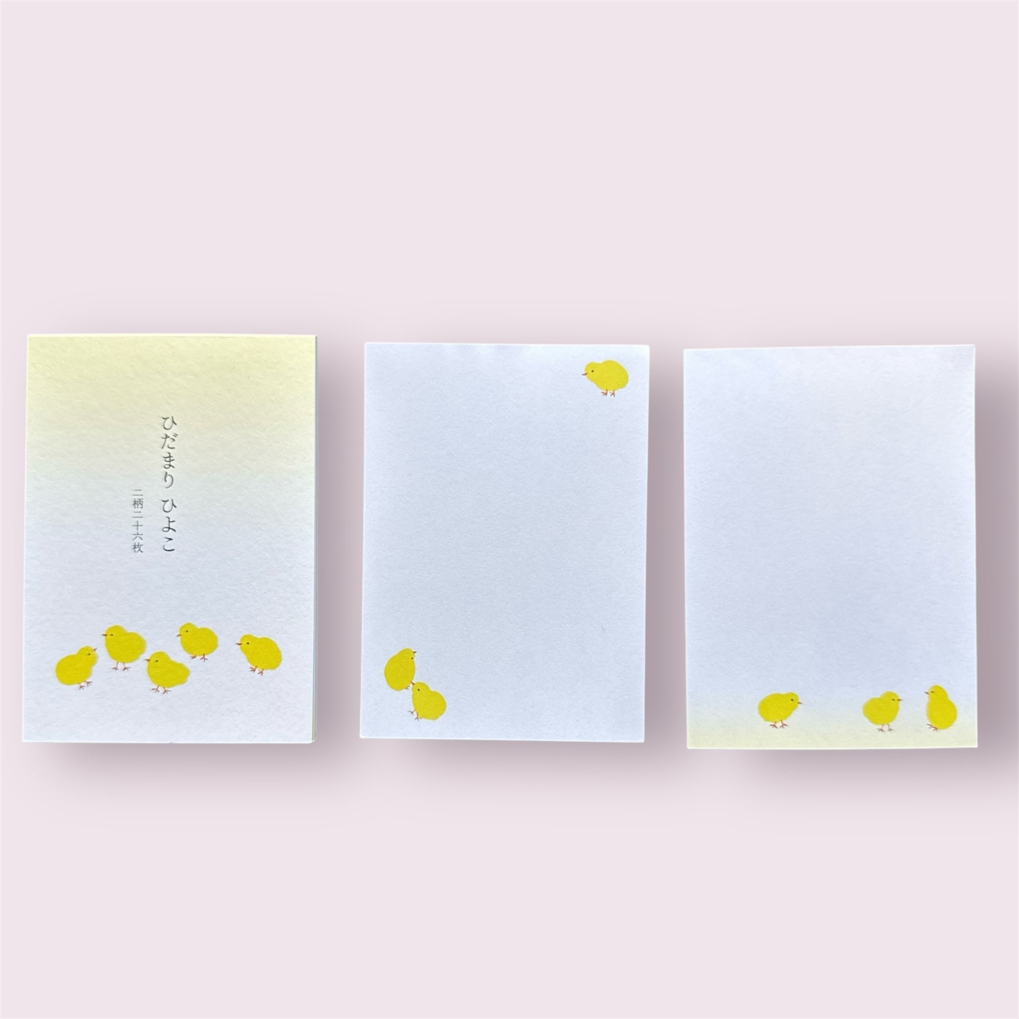 ひだまりに遊ぶかわいいひよこのこびんせんです。